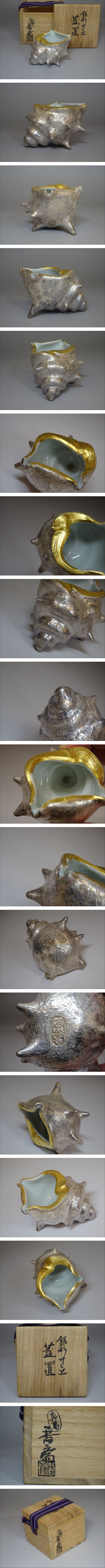 【涼風庵】真葛香斎 作 銀叩サザエ蓋置 共箱 茶道具 栄螺 銀彩 茶道具 | |||