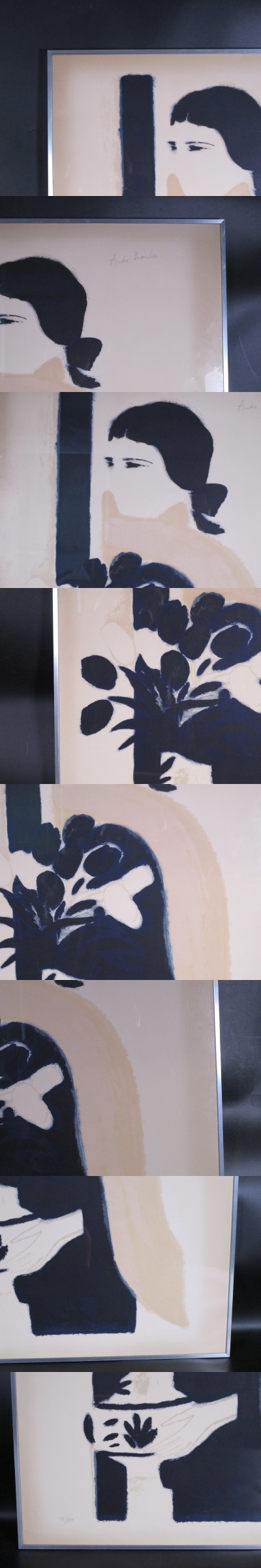 ●【真作】 画家・版画家 Andre Brasilier アンドレ・ブラジリエ 『花瓶を持った女性』 13/150 リトグラフ 直筆サイン 額装 箱付 ■サイズ:(額寸)縦 約 90.5cm/横 約 61.5cm・(画寸)縦 約 89cm/横 約 60cm ※素人寸法の為、若干の誤差はご了承ください。 ■状態につきましては経年によるスレ・汚れ・やけ・小キズなどが見られます。 ※その他の細かな状態は写真にてご確認・ご了承の上、ご入札くださいませ。 ●こちらの商品などは時代物や古いお品・骨董品となりますので、細かな状態を気にされる方・神経質な方のご入札はご遠慮くださいませ。【260114HZN】 |