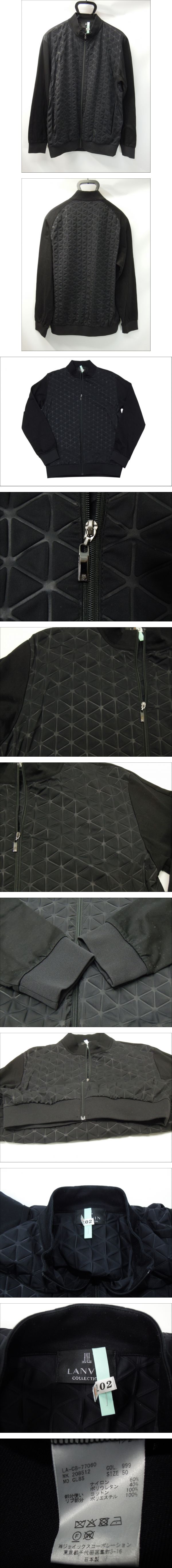 黒を基調としたボディに、ダイヤモンド状のキルティング加工が施され、光沢感のある上品な輝きを放ちます。スタンドカラーの首元と両サイドのナイロン生地パネルがスポーティさを強調し、フルジップで着脱しやすいトラックジャケットらしいシルエットです。