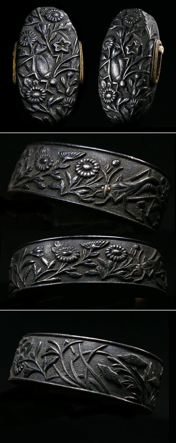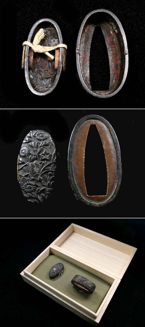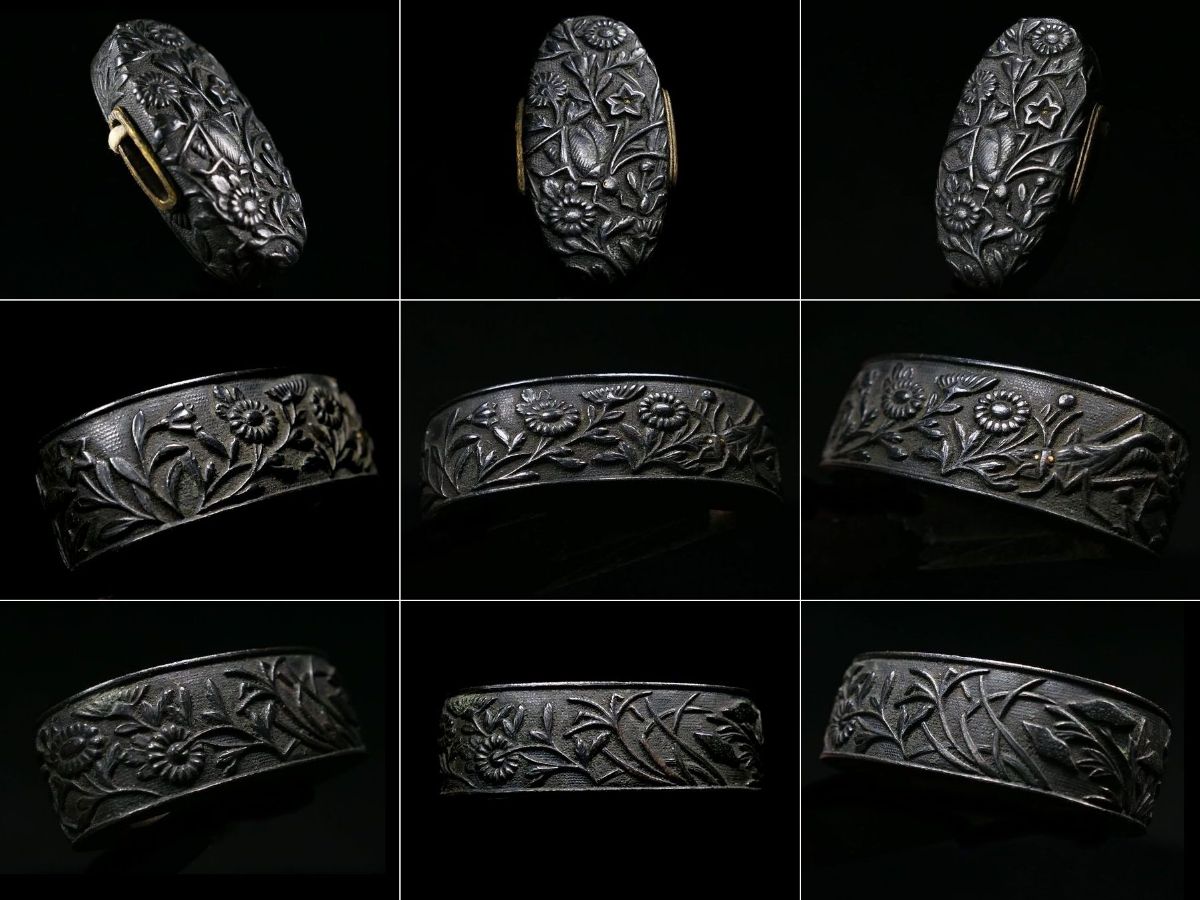| 商品説明 | ~寸法~ (縁) 約 3.83cm× 約 2.15cm× 約 1.22cm(厚み) (頭) 約 3.34cm× 約 1.63cm× 約 0.72cm(厚み) 上質な赤銅魚々子地に 繊細な鋤出高彫細工の秋草秋虫図の施された 趣きある雰囲気良き一品です。 作行から見て「美濃」の優品と推測しております。 詳しくは画像にてご確認下さい。 お好きな方、この機会に是非手に入れて下さい。 桐箱がございます。 大切にして頂ける方の元へ届けば幸いでございます。 ~状態~ 全体的に見て状態は概ね良好です。 画像にてご確認下さい。 許容範囲内の時代傷みはご理解下さい。 |