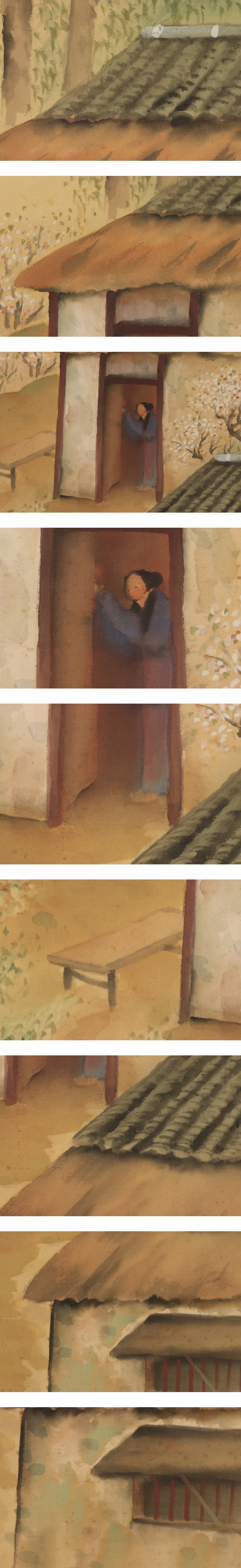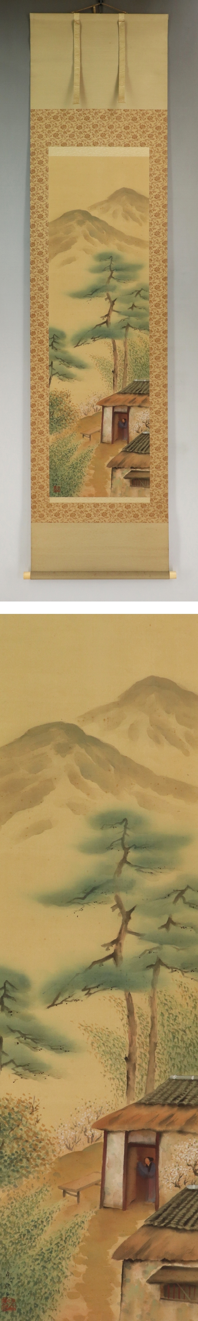 | №2205135【真作】森守明【山村早春】◆絹本◆共箱◆掛軸 | |