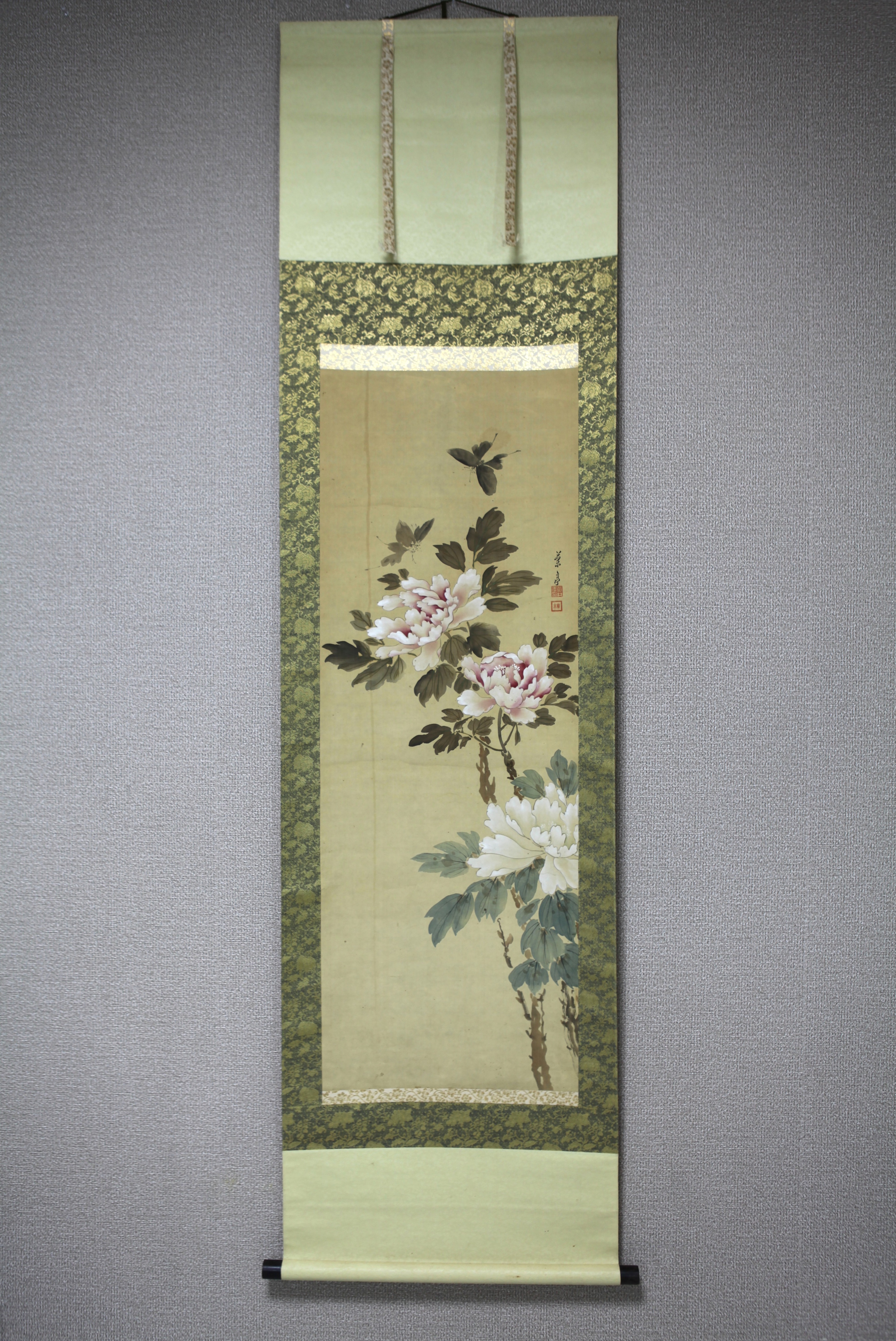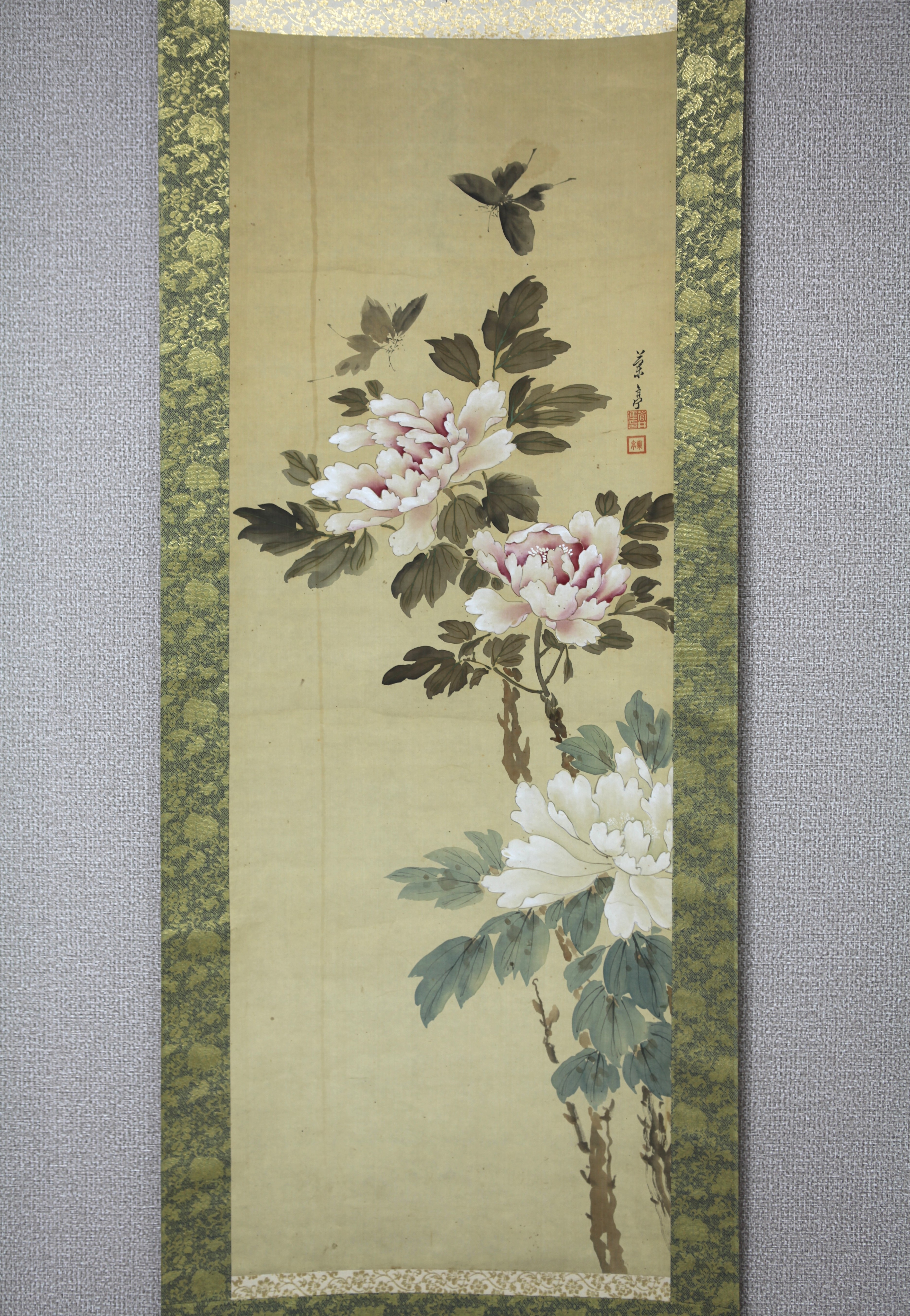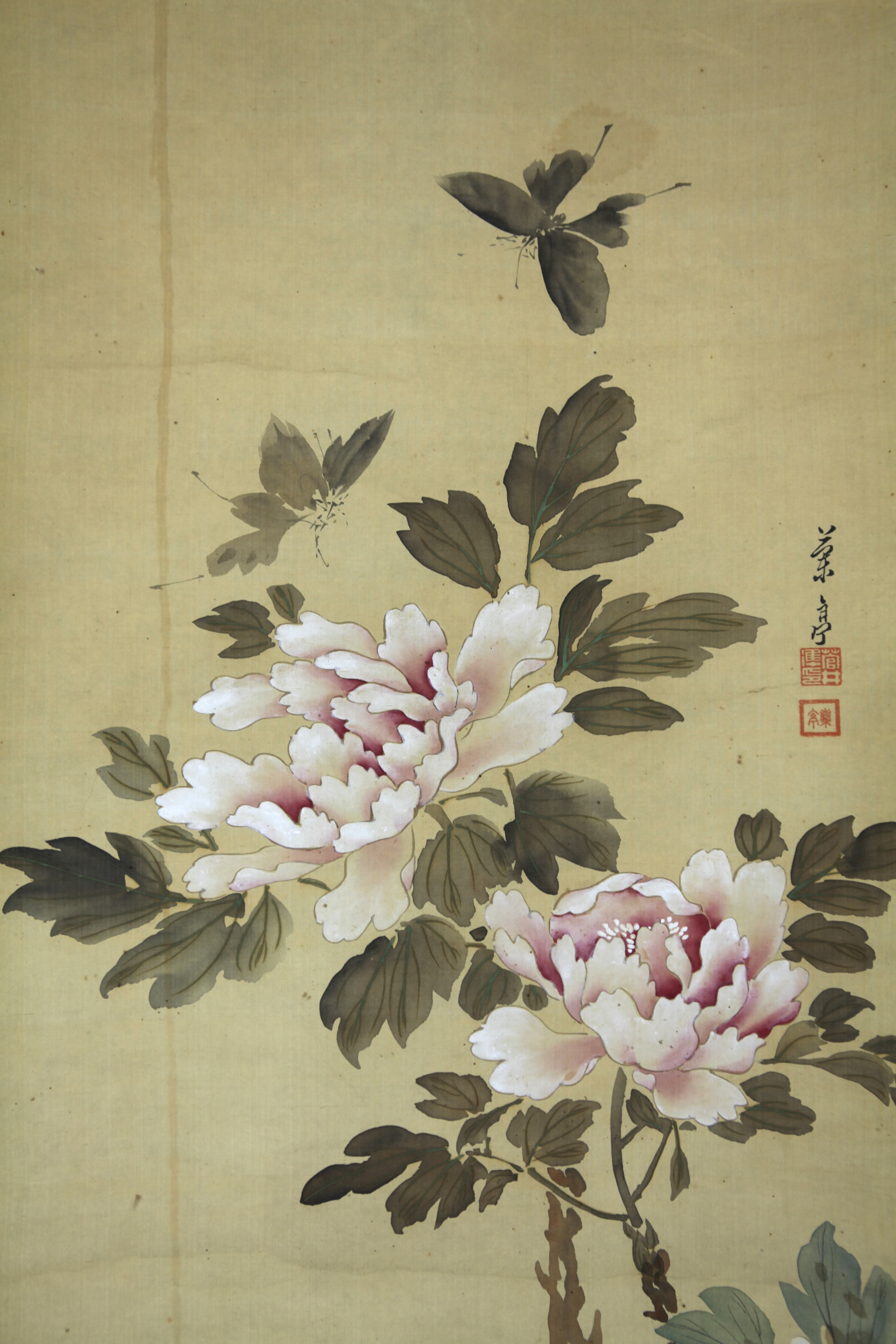 | 【真作】【風車】 菅井蘭亭 「花に蝶」◎肉筆絹本◎新潟の人 高田藩士 滝和亭師事 南画大家 | ||||||||||||||||||||