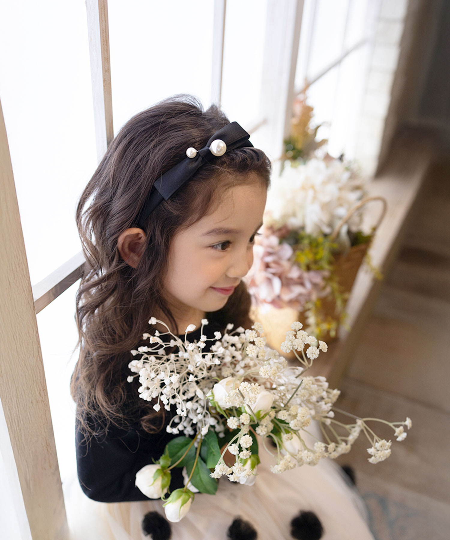 | サイズ | カチューシャ幅:約1.5cm リボンモチーフ:縦2cm/横11cm パールサイズ:1.5cm / 1cm |