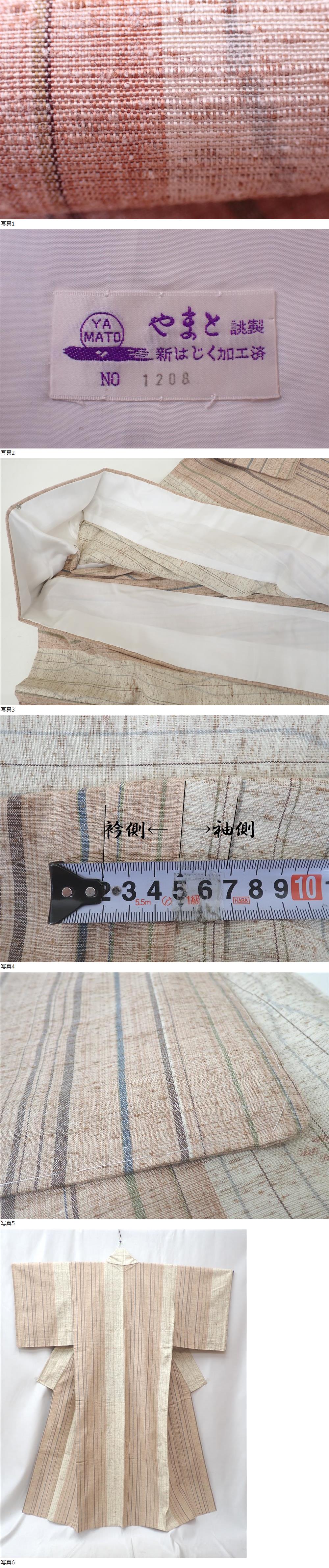 未使用 しつけ糸付き やまと謹製 ウール混のお着物 胴抜き やたら縦縞 身丈151cm(+9cm) 裄丈64.5cm | ||||