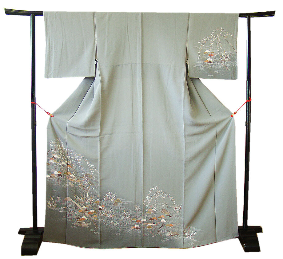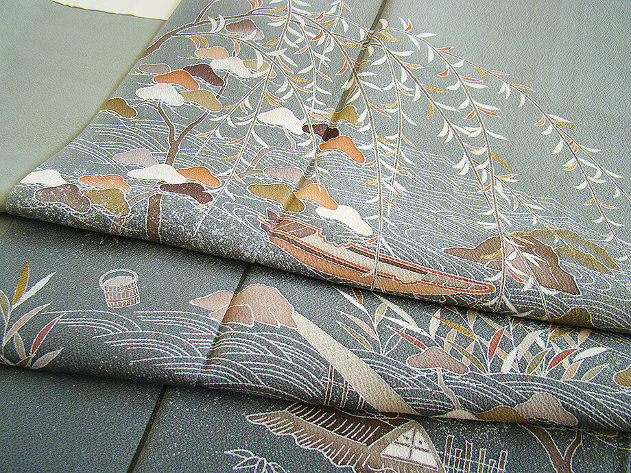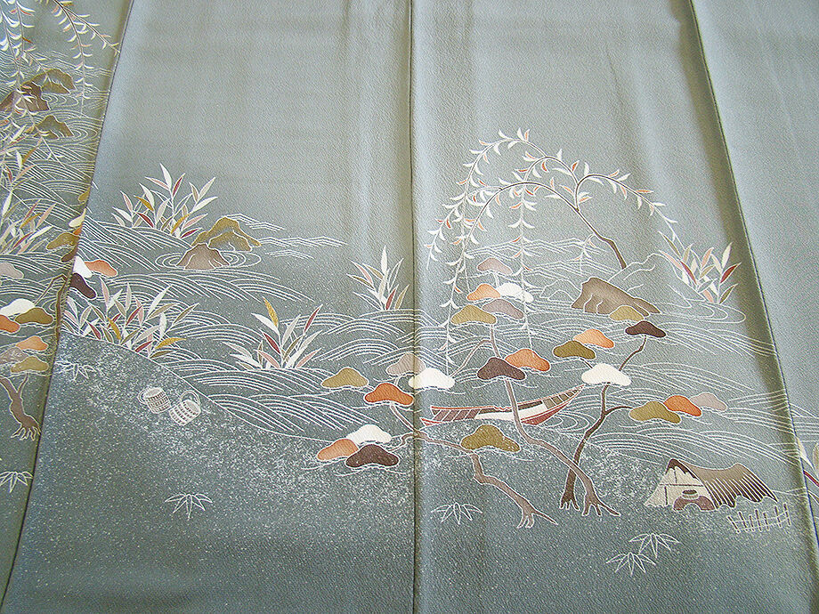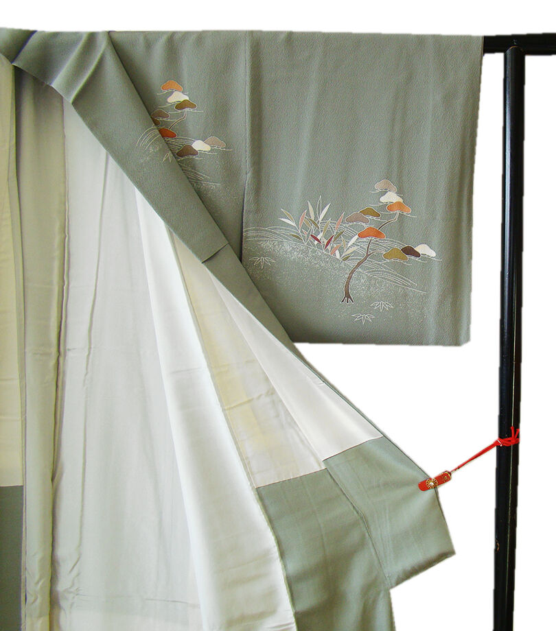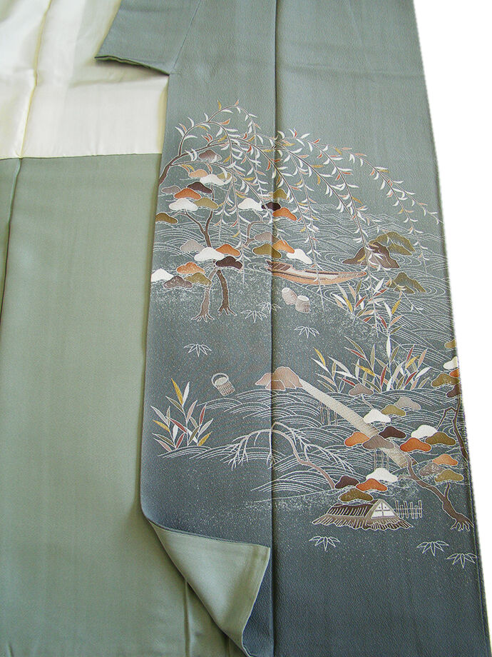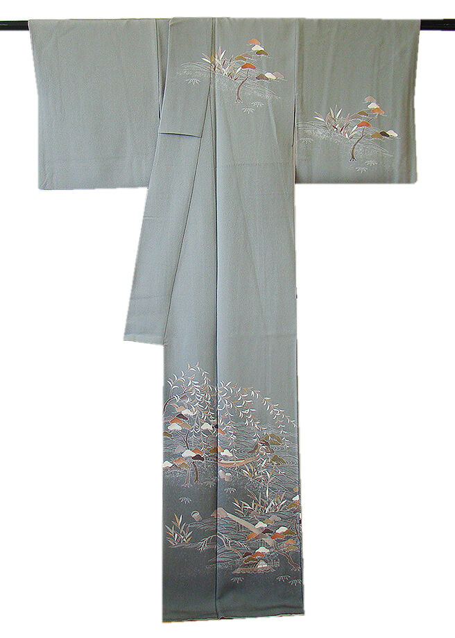 | 商品説明 | こちらのお品は「袷」ですので10月から5月までお召頂ければと思います。 とてもしなやかで柔らかな手触りの着心地良い重めのぽってりとした極上ちりめん地の生地、 鼠色地に裾にかけて濃い鼠色ぼかしに松や竹、草木、垣根等の染柄、 気品に満ち溢れた彩りが正統派のお着物として一枚は欲しい逸品の素敵なお着物です。 八掛は湊鼠色地に柄入り(正絹)、幅広い年代の方にお召頂けます。 |