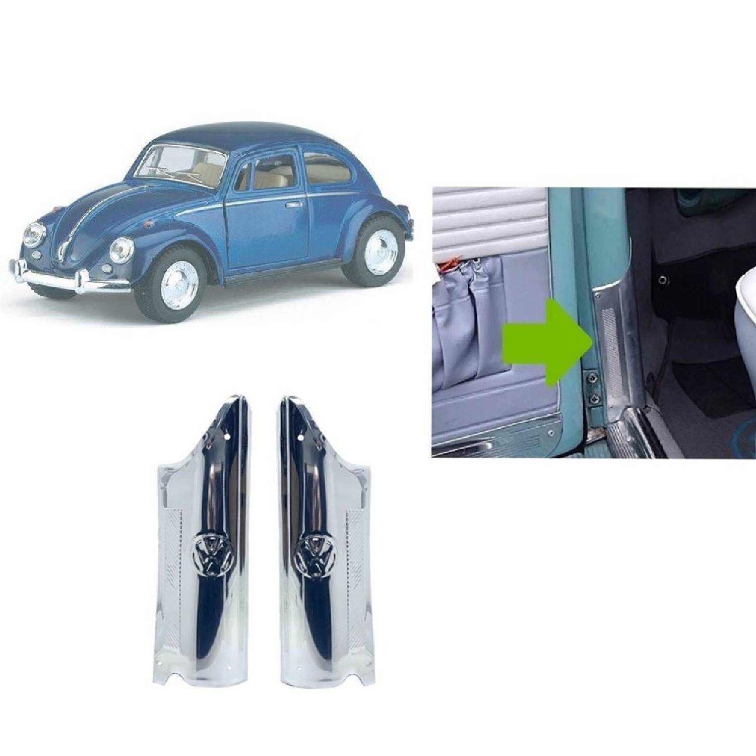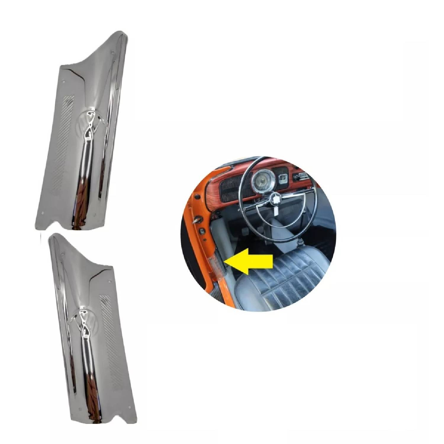 ドア ピラートリム ストンガード 飾り VWロゴ ペア 2個セット ステンレススチール製 角 ピラー VW空冷 T1 ワーゲン ビートル用 1950年式~