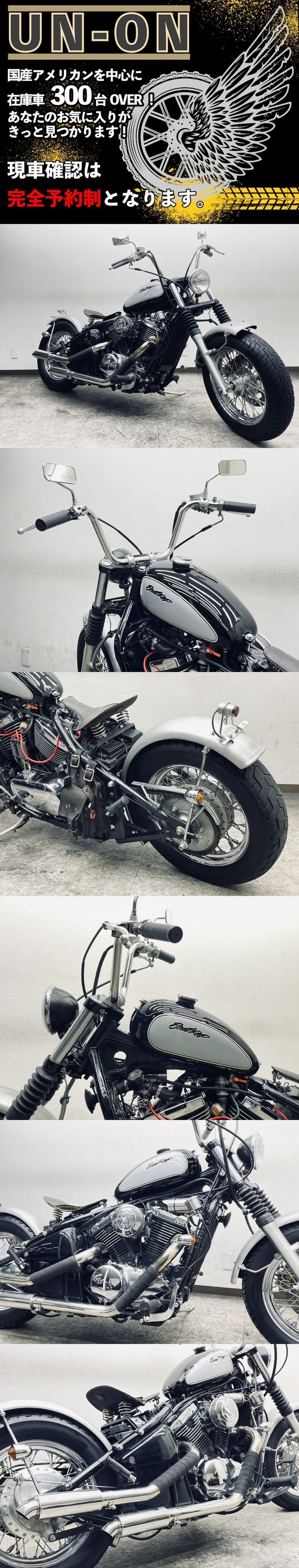 | ~~~~~~ ご注意ください ご注意ください ご注意ください ご注意ください ~~~~~~ 掲載車両は、すべて当社保管倉庫において、直接販売・卸販売をしています。 落札いただいたとしても、商談中の場合やバイクショップ様・業者様が引き上げ直後の場合もあります。 また、落札されても連絡が取れない場合や、ご入金の確認が取れない場合は、他のお客様を優先と致します。 <<<ご連絡先>>>現車確認、大歓迎です! *完全予約制です。必ず事前にご連絡ください* !!! 入札前には、必ずメールか電話にてご連絡ください !!! 電話:045-719-5355 当社HP https://sites.google.com/view/un-on/home メール:unonbike@gmail.com お気軽にご連絡ください お問い合わせの際は バルカン400クラシック 管理番号 527 でお願いします! セルにてエンジン始動、アイドリング、吹け上がりともに良好です。 取り扱い車両はすべて中古車・現状引き渡しとなります。 ご入札前には、出来る限り「現車確認」もしくは「お電話」「メール」にてご連絡をお願いします。 車輌状態を説明させていただきます。 【社外パーツについて】 本車両に付属している社外パーツにつきましては、出品前に動作確認は行っておりますが、中古品のため万が一不具合等があった場合でも 保証は致しかねますので予めご了承の上、ご検討くださいますようお願い致します。 電話番号:045-719-5355 メール:unonbike@gmail.com 残念ながら、事前のご連絡がない場合、「誤入札」「誤落札」が多い為、入札・落札を取り消す事もありますので、 予めご了承ください。 >>>>>>>>>>>>>>>>>>>>>>>>>>>>>>>>>>>>>>>>>>>> 当店は業者販売・現状引き渡し専門店になります。 一般のお客様にも、業者価格にて販売しています。 基本的には整備料も頂かず現状販売の形となりますので、ご購入後は「点検・整備・メンテナンス」を行ってからご使用ください。 現車確認・業者販売 大歓迎!! 国産アメリカン中心に 常時 300台前後の車両在庫があります! 現車確認、大歓迎です。 車両引き渡しについては、『自賠責保険加入』『予備車検取得』『登録・届出代行(ナンバー登録)』を完了してからになります。 『登録・届出代行費用』は、横浜登録 手数料 20000円 (税別) 横浜登録以外の管轄外 手数料 30000円(税別)となります。 『予備車検取得』については、エンジンサイズや搭載マフラー等によって変わってきますので、まずはお問い合わせください。 走行距離は、メーター表示距離となります。 配送につきましては、当社にて契約している陸送会社様 3社の中から最安を選択して手配いたします。 配送費用については、納車先住所によって異なりますので、お問い合わせください。 デポ持ち込みに関しては7000円(税別)で行います。 なお、落札後のキャンセルは受け付けておりません。ご不明点等がありましたら、必ず入札・落札前にお問い合わせください。 落札後のキャンセルについては、即決価格の10%のキャンセル費用が発生いたしますので、予めご了承ください。 <<<<<<<<<<<<<<<<<<<<<<<<<<<<<<<<<<<<<<<<<<<< 電話 : 045-719-5355 メール:unonbike@gmail.com 現車確認は業者オークションで不在時が多い為 完全予約制です ~~~~~~~~~~~~~~~~~~~~~~~~~~~~~~~~~~~~~~~~~~~~~~~~ 取り扱い車両はすべて中古車・現状引き渡しとなります。 ご入札前には、出来る限り「現車確認」もしくは「お電話」「メール」にてご連絡をお願いします。 車輌状態を説明させていただきます。 電話番号:045-719-5355 メール:unonbike@gmail.com 残念ながら、事前のご連絡がない場合、「誤入札」「誤落札」が多い為、入札・落札を取り消す事もありますので、 予めご了承ください。 >>>>>>>>>>>>>>>>>>>>>>>>>>>>>>>>>>>>>>>>>>>> 当店は業者販売・現状引き渡し専門店になります。 一般のお客様にも、業者価格にて販売しています。 基本的には整備料も頂かず現状販売の形となりますので、ご購入後は「点検・整備・メンテナンス」を行ってからご使用ください。 車両引き渡しについては、『自賠責保険加入』『予備車検取得』『登録・届出代行(ナンバー登録)』を完了してからになります。 『登録・届出代行費用』は、横浜登録 手数料 20000円 (税別) 横浜登録以外の管轄外 手数料 30000円(税別)となります。 『予備車検取得』については、エンジンサイズや搭載マフラー等によって変わってきますので、まずはお問い合わせください。 走行距離は、メーター表示距離となります。 配送につきましては、当社にて契約している陸送会社様 3社の中から最安を選択して手配いたします。 配送費用については、納車先住所によって異なりますので、お問い合わせください。 デポ持ち込みに関しては7000円(税別)で行います。 なお、落札後のキャンセルは受け付けておりません。ご不明点等がありましたら、必ず入札・落札前にお問い合わせください。 落札後のキャンセルについては、即決価格の10%のキャンセル費用が発生いたしますので、予めご了承ください。 <<<<<<<<<<<<<<<<<<<<<<<<<<<<<<<<<<<<<<<<<<<< |