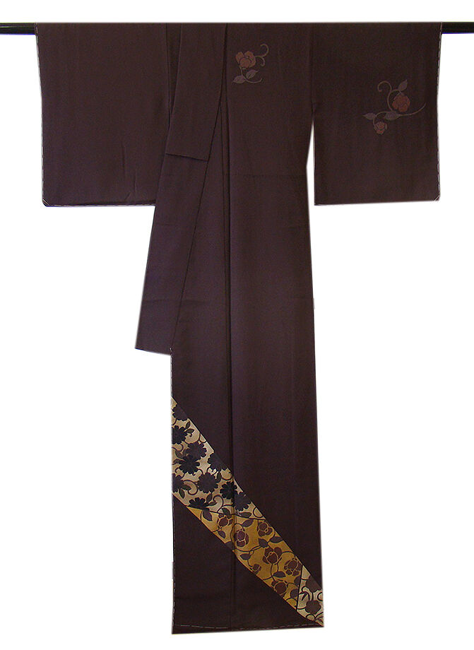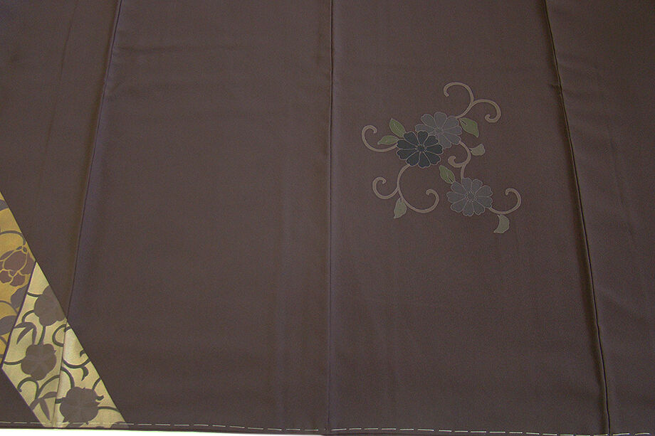 | 商品説明 | こちらのお品は「袷」ですので10月から5月までお召頂ければと思います。 とてもしなやかで柔らかな手触りの着心地良い重めの上質な極上ちりめん地の生地、 渋い紫鳶色地に墨、茶鼠、金色等の花草柄の染柄に刺繍入り、 気品に満ち溢れた彩りが正統派のお着物として一枚は欲しい逸品の素敵なお着物です。 八掛は共布(正絹)、幅広い年代の方にお召頂けます。 |