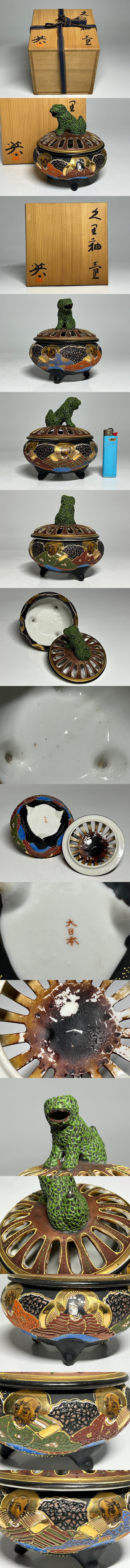 薩摩焼 羅漢図 香炉 合わせ箱 ◆商品詳細 寸法(約):12.2x10x8.7(高×幅×口径cm) ※寸法に若干の誤差が生じる場合もございます。 少し汚れ、剥がれがありますので、 ご承知の上入札お願いします。 状態等画像にてご確認の上ご入札よろしくお願いいたします。 ◆発送先等のご連絡とお支払いについて ※発送先等のご連絡 落札時から48時間以内にお願い致します。 ※お支払 かんたん決済の期限内にお願い致します。 複数点落札時にまとめて取引の場合(72時間内)に、 まとめて取引の取引手順(落札者方の操作)を参考にお願い致します。 梱包したサイズを測って、地方によって送料を決めますので、よろしくお願いします。 ◆掲載画像について ※画像は現物を撮影しておりますが、照度、遮光、モニターによっては実物と 色目が異なって見えることがありますのでご注意ください。掲載画像では確認 できない傷や汚れがある可能性もございます、あくまで 中古品であるということをご承知の上、御入札をお願い致します。 ◆補償について 商品到着後はすぐに状態の確認をお願い致します。 商品の破損等がございまし たら、箱や梱包材など全てそのままの状態で保存し、お早めにご連絡ください。 (到着日から一週間以上経過、梱包材の廃棄済み等の場合、保証は致しかねます のでご注意ください。) ◆返品について 思っていたイメージと違う、などのお客様主観による返品はお受けできません ので、予めご了承ください。ノークレーム、ノーリターンでお願いします。届 いた商品が商品説明と著しく異なる場合(寸法、キズ記載ミスなど)のみ承り ます。早めにご連絡ください。 ◆注意事項 当方の希望価格と隔たりがある場合は、終了前にやむなく取下げさせて頂く場 合がございます。 ※商品ご落札翌日から4日間以内にご連絡が取れない場合は、入札取消の処置を 取らさせていただく場合がございます。 ※評価の悪い方は取り消す場合がございます。 ※原則として当方の不備以外のキャンセル・返品・返金は受け付けておりません。 以上の点を予めご了承頂いた上で、入札・落札お願い致します。 ◆発送方法 ▼ゆうパック(補償あり/追跡あり) 梱包後のサイズ:~約60cm ※送料全国一律880円 (但し北海道、沖縄、離島は+500円いただきます。) 発送元は静岡県となります。 ( 商品の組み合わせによっては同梱をお断りさせていただく場合があります。) ※大型商品について 郵便局の規定を超える商品の場合は、佐川急便またはヤマトでの発送となります。 |
