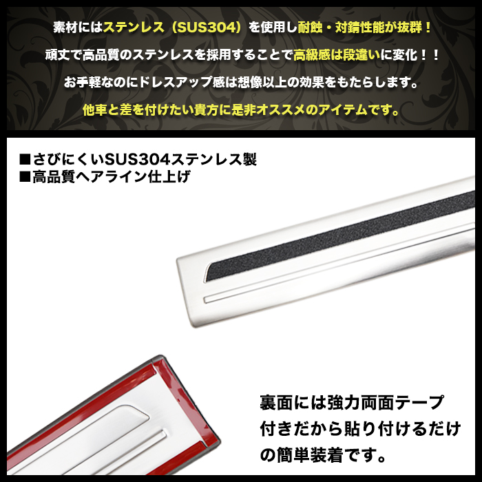 | 車種専用設計で取付け楽々! 上質な保護と洗練されたデザインを両立 ドレスアップ効果抜群のアイテムです! ■適合車種:スイフト ZC/ZD 系 ■年式:2024年2月(R6.2)? ■サビに強いSUS304ステンレス製 ■カラー ・シルバー ■3D立体成型品 ■両面テープ装着済み ■セット内容:サイドスカッフプレート 4P |