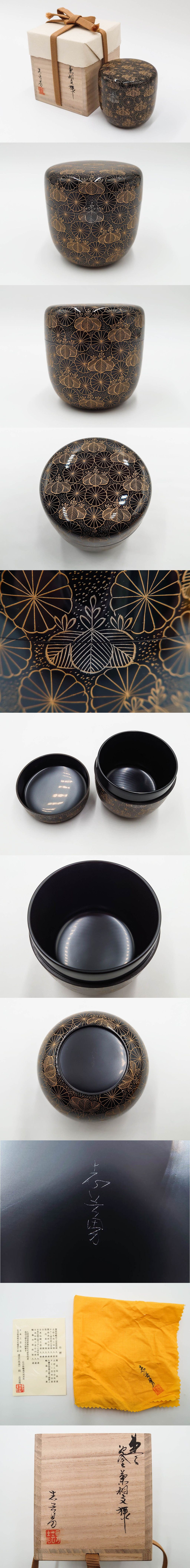 R-085325 輪島塗 沈金師 前志芸男 在銘 沈金菊桐文様が繊細に施された棗 共箱付き(なつめ,茶器,茶入れ,茶筒,漆器,漆芸,茶道具,金彩)