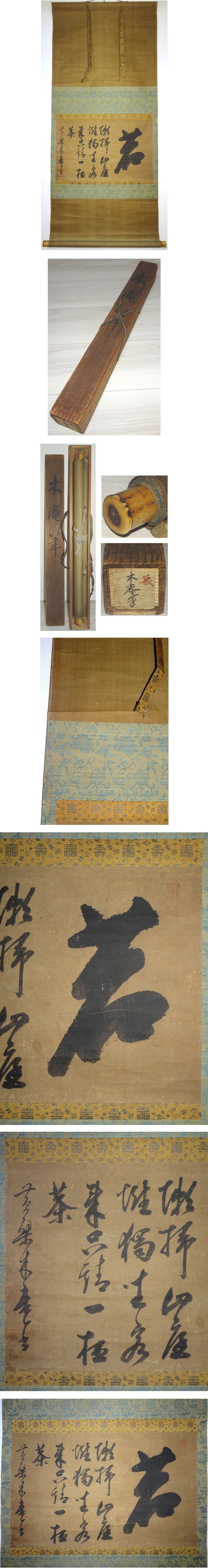 紙本 春日撥軸 真筆保証(真作) 裂三段表装風帯つき ウブ幅 杉箱入 中身寸法27.5×44.5 少し時代等あり 幅自体しっかりしています よろしくお願い致します