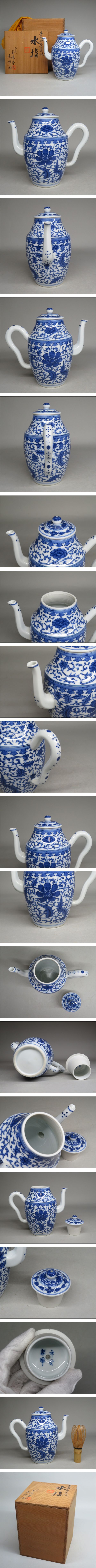 | 煎茶道具◆京焼 平安 萬珠堂 春峰造 青華唐草紋水指 茶注/水器 共箱付 | ||