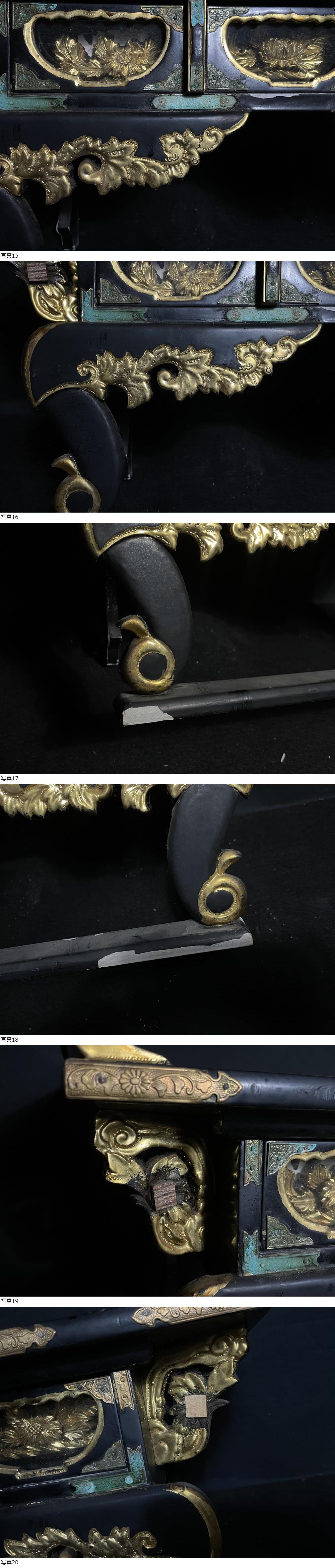 | 仏教美術 経台 黒塗経机 金彩 金具打 時代 仏具 寺院 横幅約61.5cm |