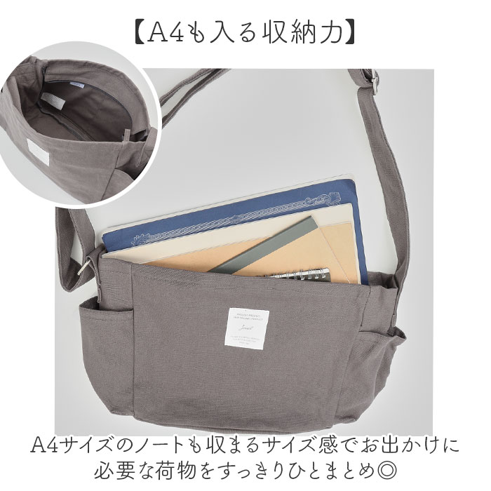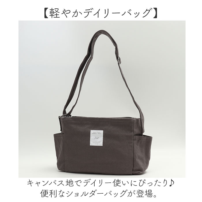| 商品説明 | ・・【軽やかデイリーバッグ】 ・キャンバス地でデイリー使いにぴったり♪便利なショルダーバッグが登場。 ・【A4も入る収納力】 ・A4サイズのノートも収まるサイズ感でお出かけに必要な荷物をすっきりひとまとめ◎ ・【両サイドポケット】 ・ペットボトルや折り畳み傘をサッと出し入れできる♪ ・【内側にはオープンポケット】 ・スマホや小物を仕分けしやすい2つのオープンポケットを配置。 ・【天ファスナーで安心】 ・中身がこぼれ落ちにくい仕様で荷物をしっかり守れる〇 ・【2way仕様】 ・長さ調節可能なショルダーベルトで、肩掛けも斜め掛けも自由にスタイルチェンジ♪ |