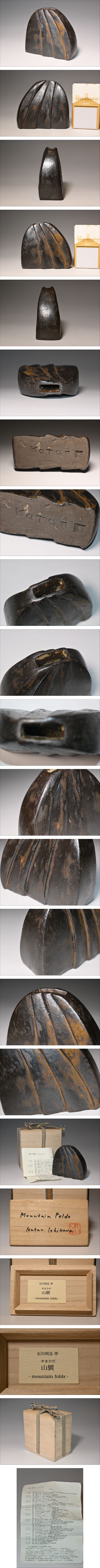 美術作家■石川珂旦 作■ mountain folds『山襞 やまひだ』一輪挿し 共箱・栞 真贋保証 KATAN ISHIKAWA 東京都生 一輪差 花器 花瓶 陶器 | |||||||||