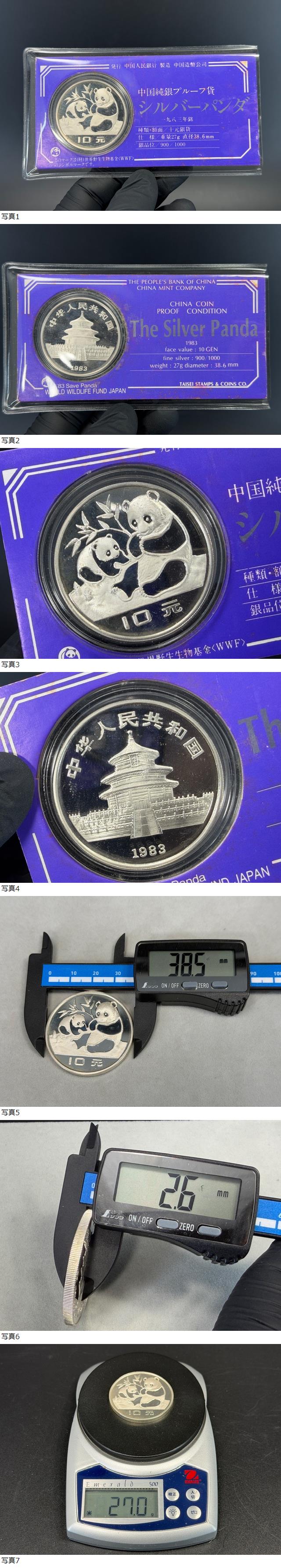 | 中国記念銀貨 中国人民銀行 プルーフ銀貨 シルバーパンダ 10元 1983年 27gコレクション品 |