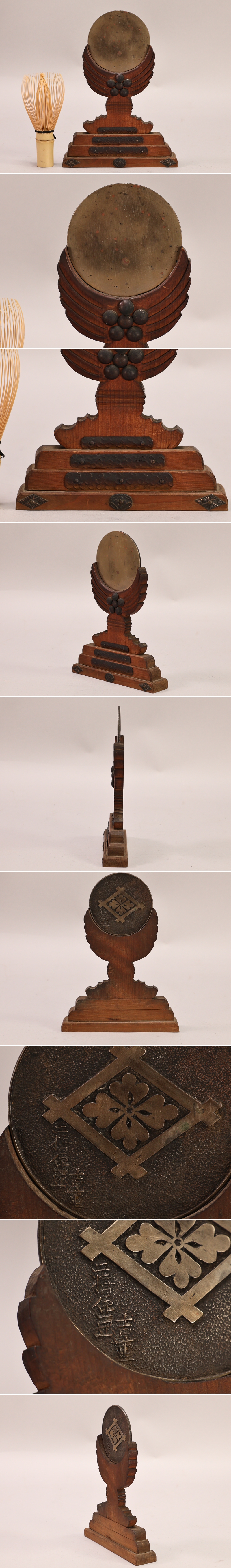 とても古い時代の八咫鏡神鏡です実際に使われていたお品となります、ある程度の使用感はご容赦ください、画像をよくご覧になり、ご納得の上でご購入下さい寸法 高さ19.5㎝ x 巾14.4㎝ x 厚み3㎝古鏡 直径7.6㎝重さ 203㎏【補足】値段交渉は歓迎いたしますので、質問欄よりお願いします、折り合いがつきましたなら、その値段で再出品させていただきます。