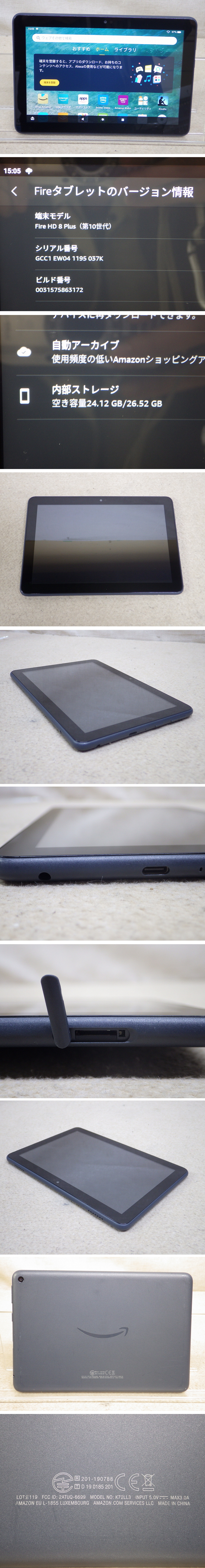 | 商品名 | Kこま2578 Amazon Fire HD 8 Plus 第10世代 8インチHDディスプレイ 32GB K72LL3 Android タブレット 本体 |