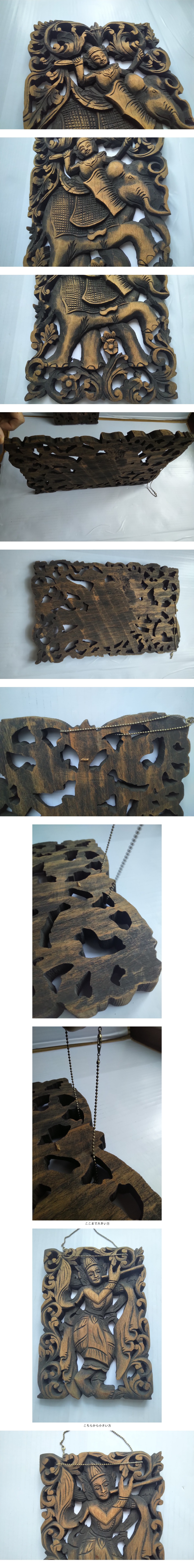 | 木彫り 壁掛け 2枚まとめて 大きい方は長辺45cm 小さい方は長辺28cm アジアンテイスト | ||
