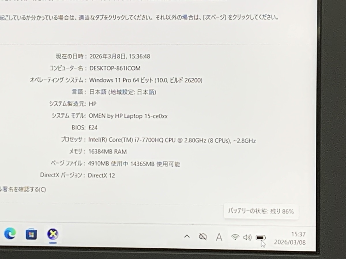 ■CPU: i7第7世代 プロセッサー,インテル Core i7-7700HQ@2.80GHz (8CPUs)~2.8GHz