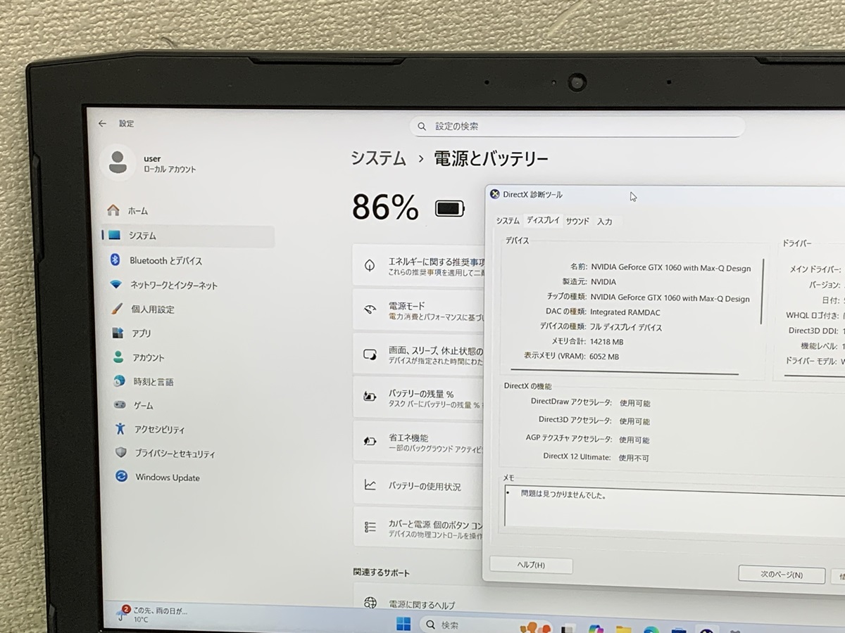 ■ビデオチップ:nvidia geforce gtx 1060 with max-q design 6gb