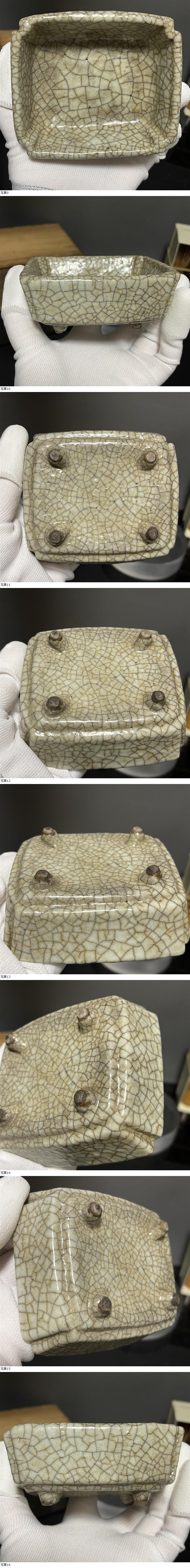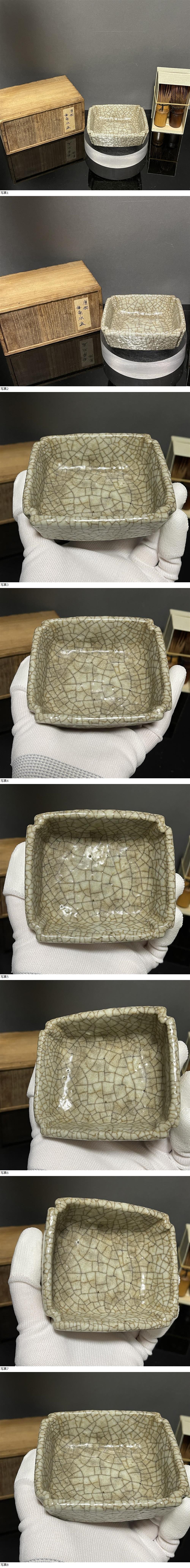 | 【C166】元/明時代 冰裂紋 角形水丞 桐木箱付 水丞 水盂 墨池 水差し 書道具 文房具 賞物 置物 時代物 中国古美術 |