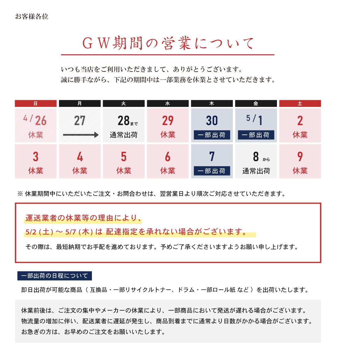 | キャンセル・返品について | ||||