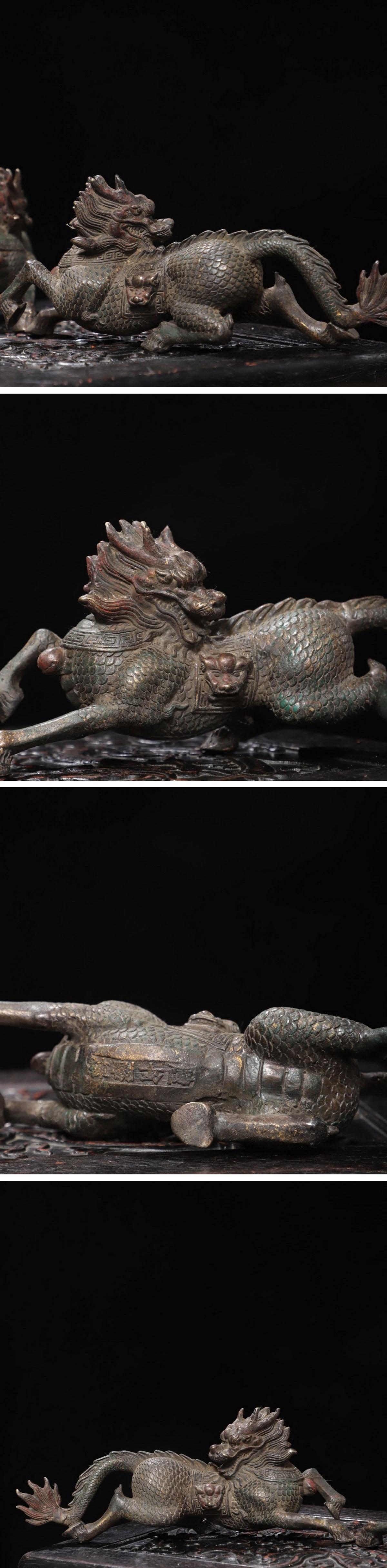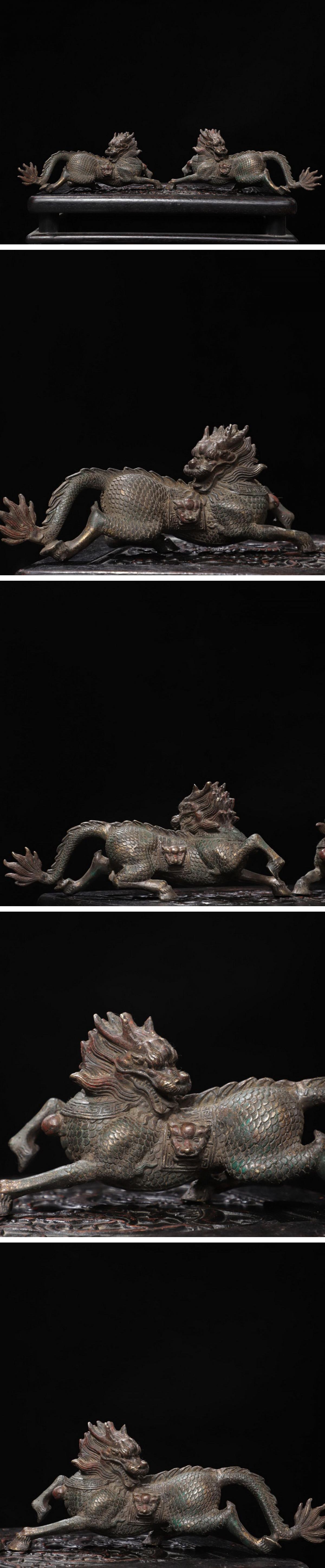 【雲錦】1円から 清時代物 銅金 瑞獣麒麟文案頭置物一双 材質保証 時代物保証 古美術 骨董品8L19-10S3