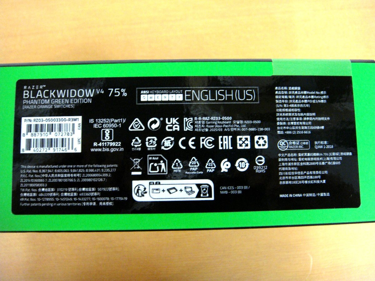 | 商品 | Razer レイザー BlackWidow V4 75% Phantom Green Edition ゲーミングキーボード ホットスワップ対応 |