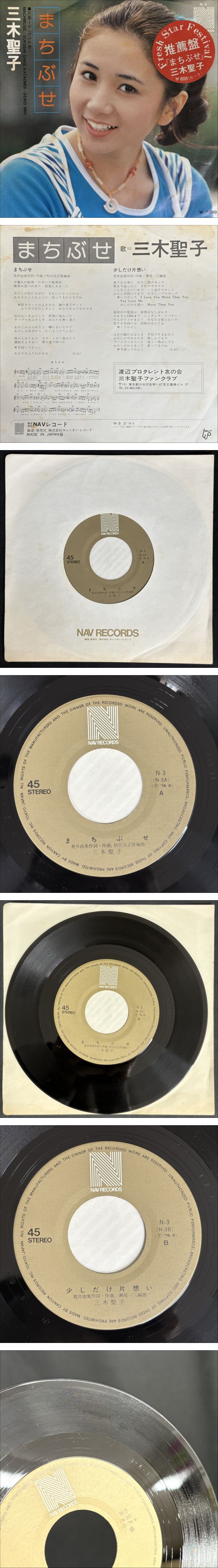 【7インチ EP レコード】三木聖子 / まちぶせ Nav N-3 | |||