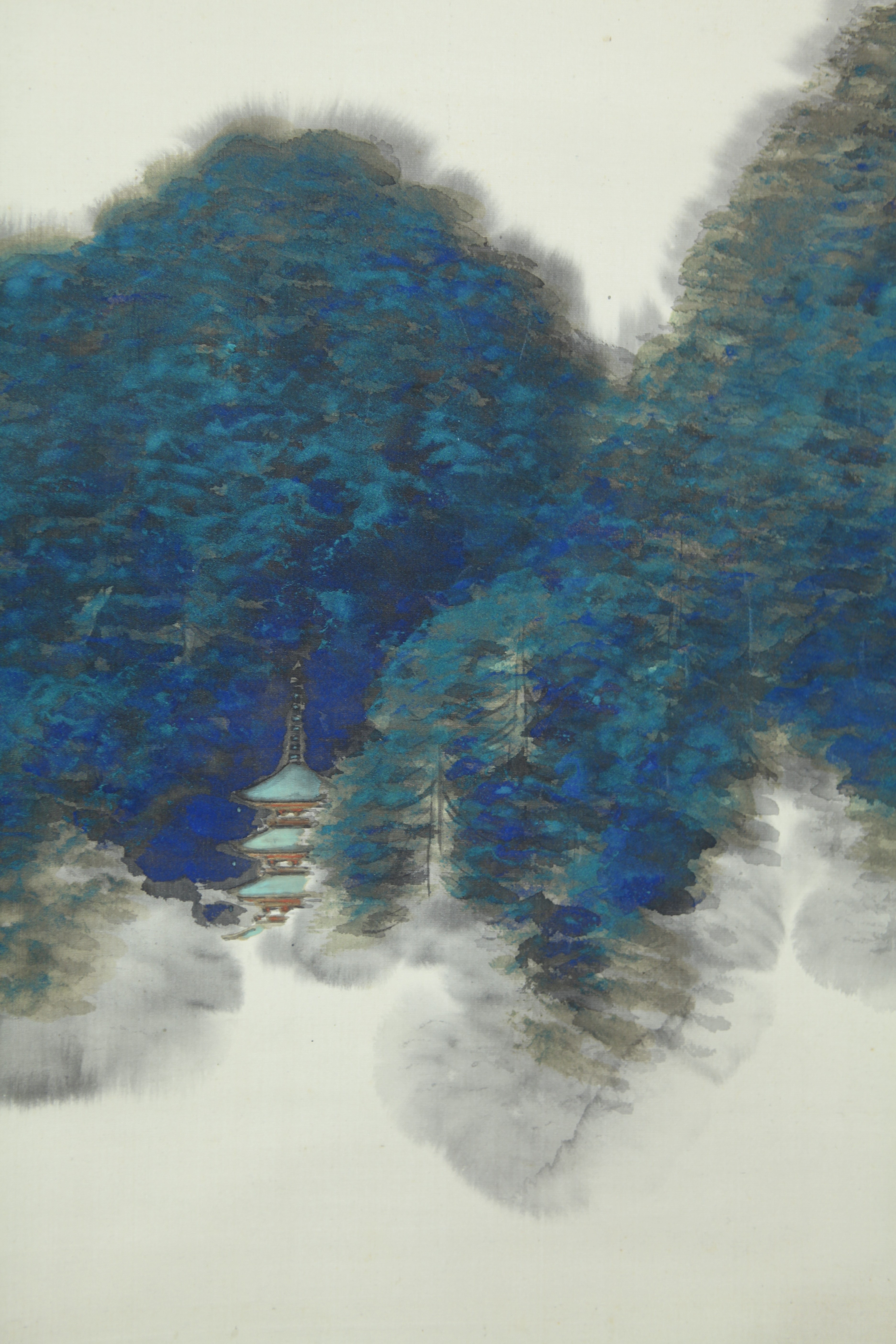 | 【真作】【風車】 川村曼舟 「雲山古寺」◎肉筆絹本◎大正~昭和時代前期 京都の人 山元春挙に師事 文展の特選受賞 | ||||||||||||||||||||
