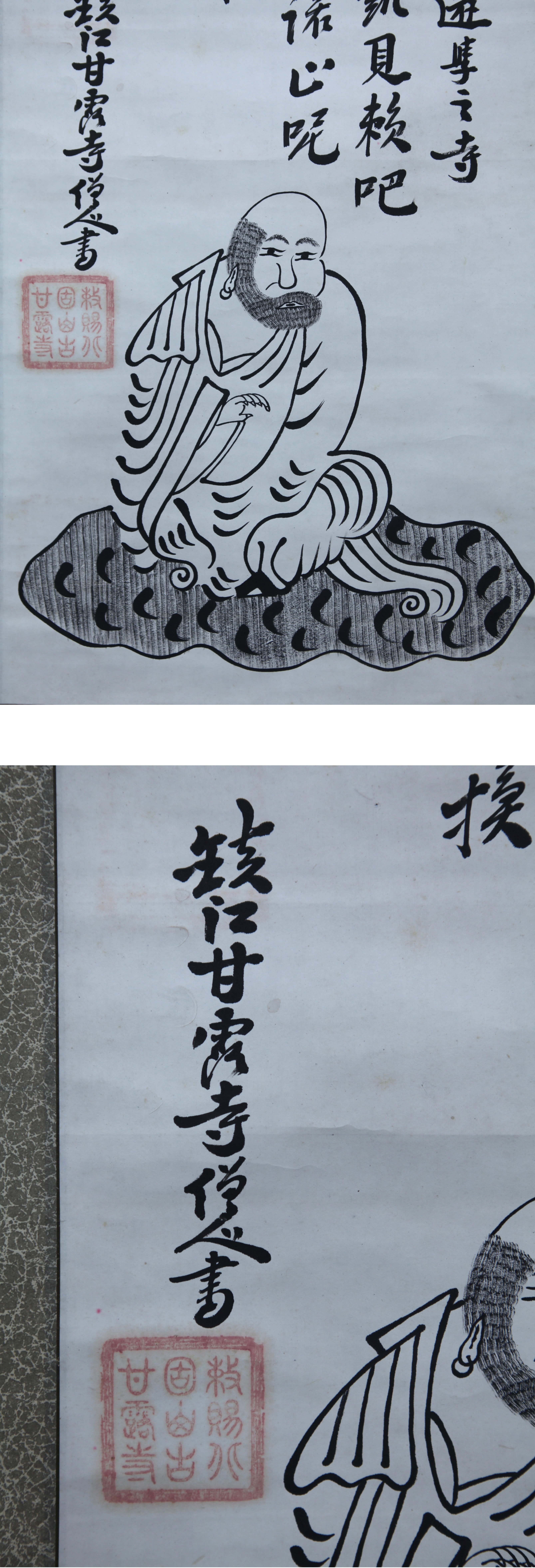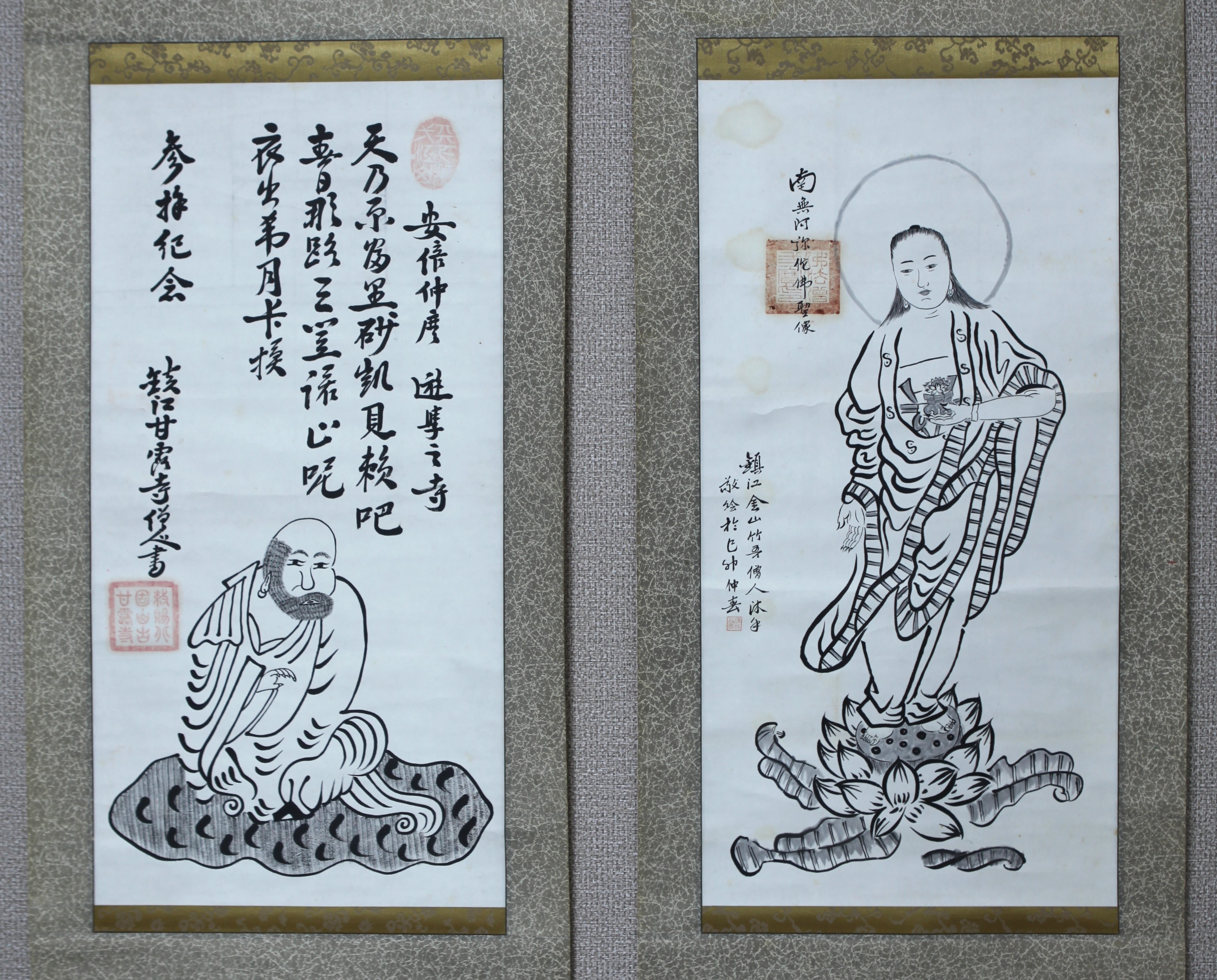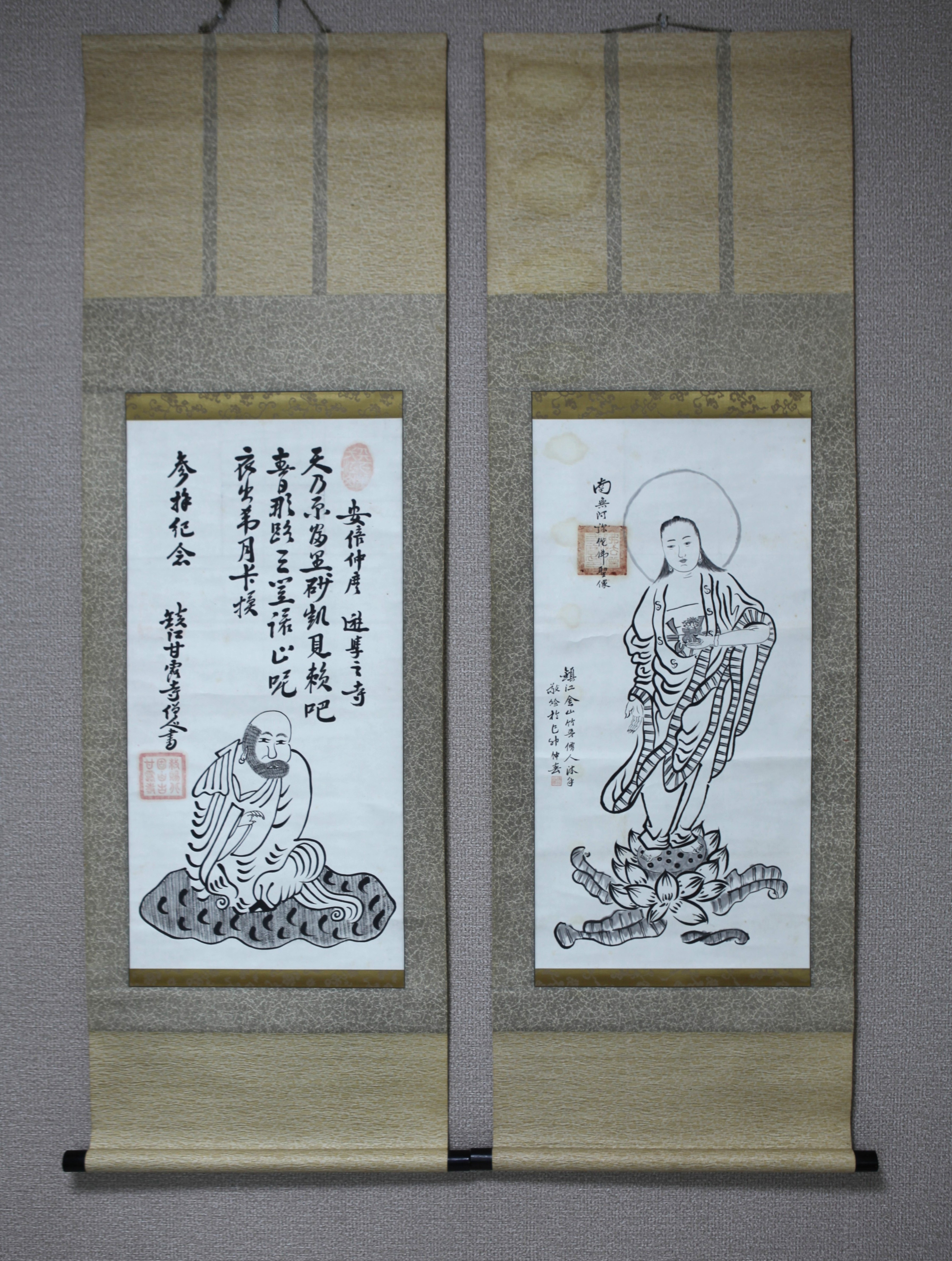 | 【真作】【風車】 鎮江 金山 甘露寺 僧人 「南無阿弥陀仏聖像」 「達磨像」 双幅対◎肉筆紙本◎清末民国時代 江蘇省鎮江 千年古寺 仏教美術 | ||||||||||||||||||||