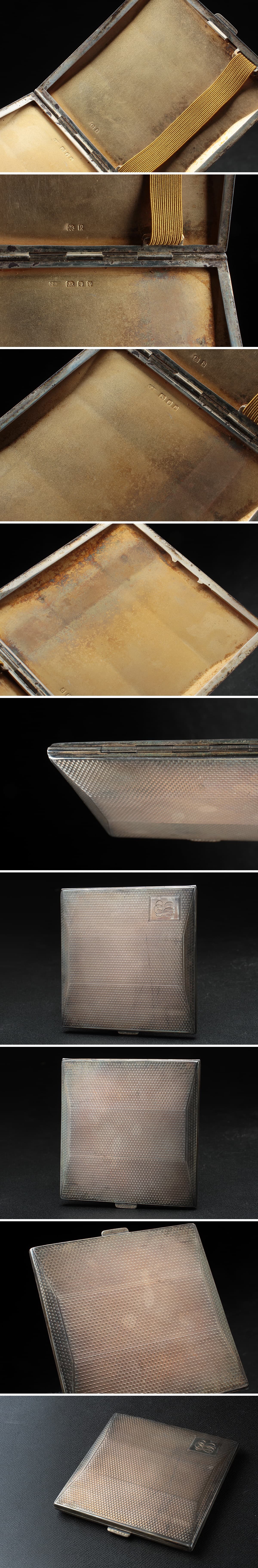 | ◆ 西洋金工 イギリス/英国製 銀製 内金 細密目肌 面取 銀煙草ケース 横8.7cm 重105g ホールマーク・銀煙草入 喫煙具 ◆