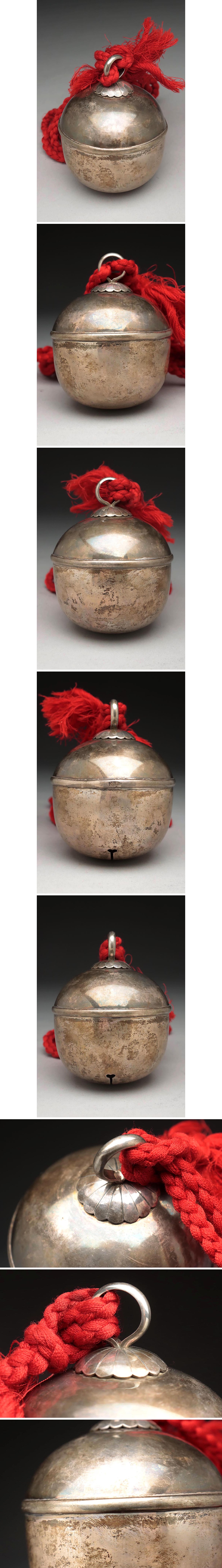 | ◆ 時代金工 純銀 仏具 銀鈴/銀神鈴 高10.5cm 重180g 木箱附 純銀刻・純銀鈴鐺・スズ・すず 仏教美術 ◆