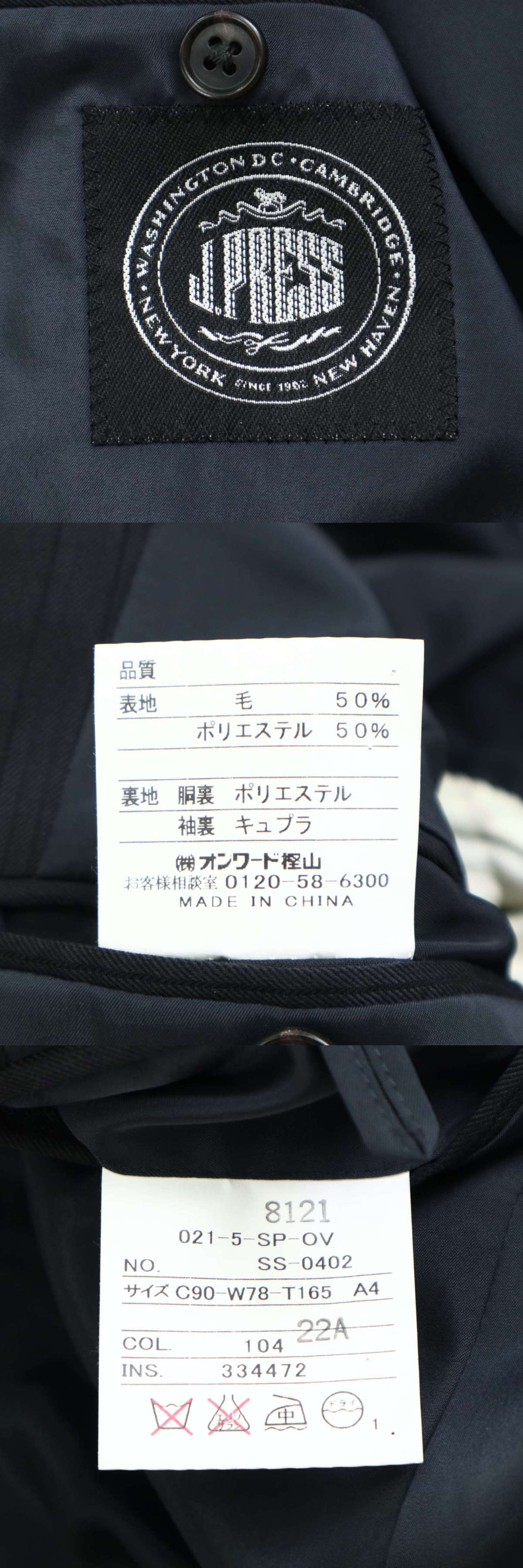 | J.PRESS ジェイプレス 通年 ウール★ ストライプ アンコン テーラード ジャケット Sz.A4 メンズ 濃灰 グレー C5T03696_4#O | |||
