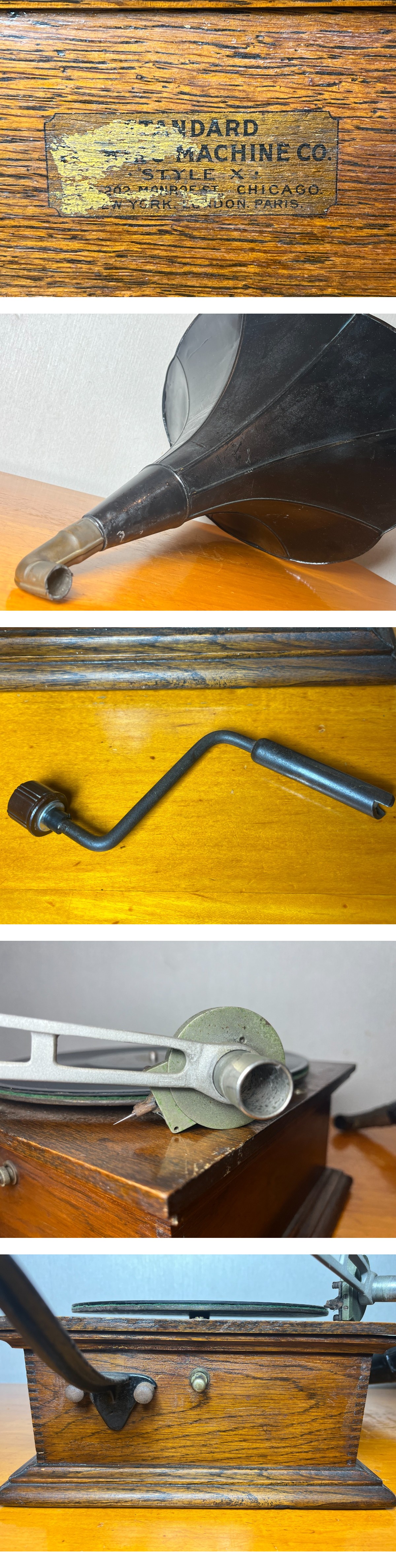 | 商品説明 | STANDARD TALKING MACHINE社 「STYLE X」蓄音機 1900年頃、U.S.A製 ストップレバー付き(横のレバーを引くと回転ストップ) 回転OK、音出し確認済み。 画像のSP盤お付けします。 推定100年以上のお品にて経年感、使用歴は感じられます。 スタンダードトーキングマシーン社(シカゴでしょうか)珍しい蓄音機かと思います。 当方も素人にて、画像にてご確認いただき詳しい方でお願いいたします。 |