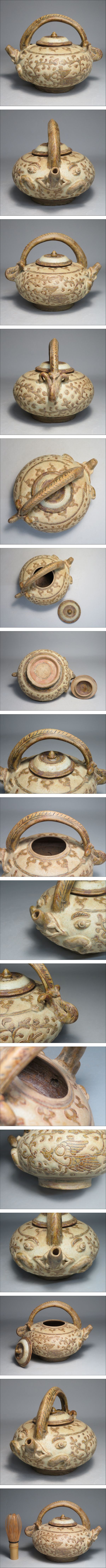 | 「都内コレクター所蔵品」タイ スンコロク 宋胡録 褐白濁釉 獣形花唐草文水注 タイ スワンカローク窯 東南アジア古陶器 | ||