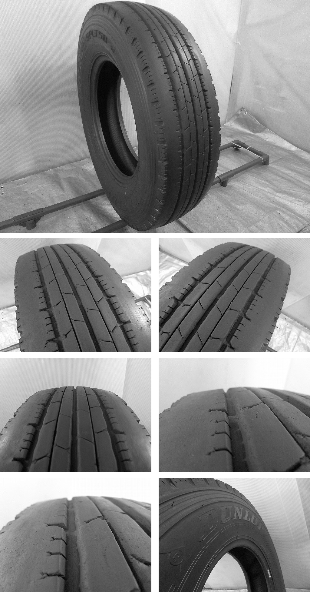 | ■状態: | 1ヶ所、中古タイヤ特有の細かいヒビが少しトレッド面の溝に出てきています。 |