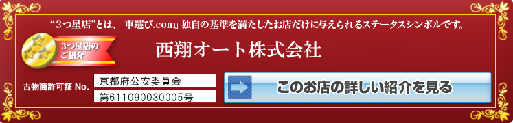 “3つ星店”とは「車選びドットコム」独自の基準を満たした販売店だけに与えられるステータスシンボルです。