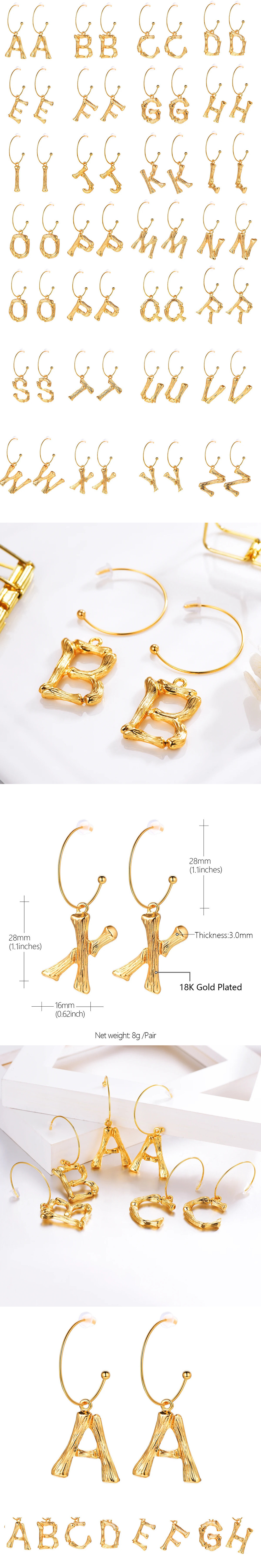 本商品は海外からの発送となり到着までに2週間程度を頂戴します。予めご了承くださいませ。商品名ゴールド カラー 竹 バンブー 植物 プラント レター ダングル 揺れる チャーム C字型 フック ドロップ ピアス レディース イニシャル パーソナライズ 軽量 ジュエリー ギフトスペック高懸念化学物質:なしサイズ(長さ×幅):27mm×20mm性別:レディースパターン:文字材質:メタルスタイル:クラシックメタルの種類:銅ピアスタイプ:フープピアス原産地:中国本土ファインまたはファッション:ファッション商品タイプ:ピアスサイズ詳細:28mmフック+26mm * 20mm文字(文字と若干異なります)素材:14Kゴールドプレート銅 925シルバーイヤーポストファインジュエリーズFineJewelrys新作