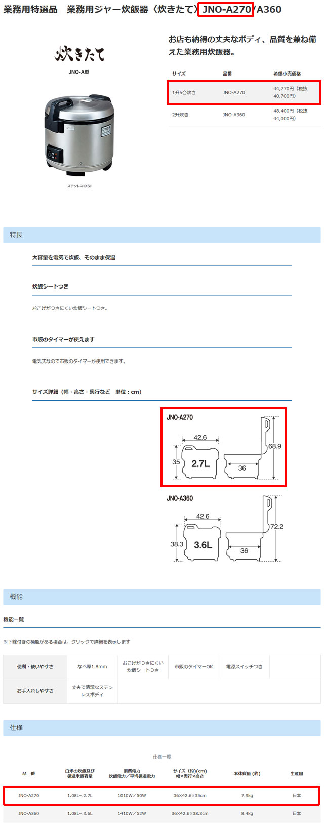 | 商品名 | 業務用炊飯ジャー | |