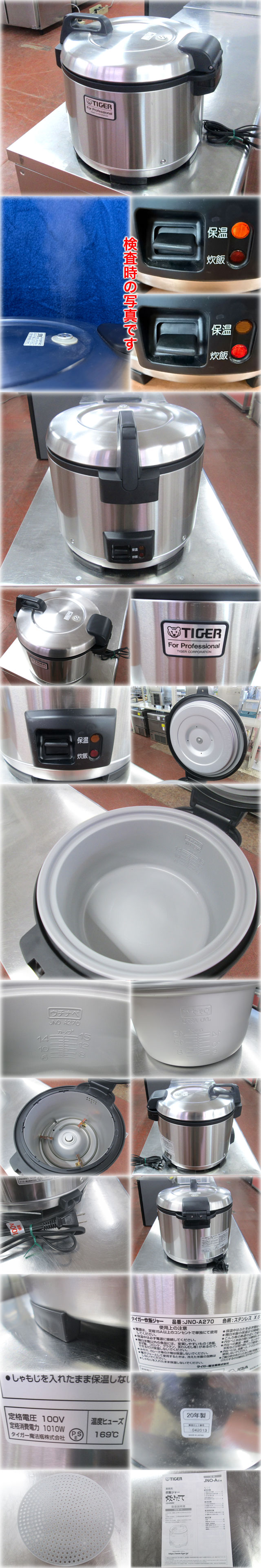 タイガー魔法瓶 業務用炊飯ジャー 炊きたて JNO-A270 を出品いたします。 ■特徴■ お店も納得の丈夫なボディ、 品質を兼ね備えた 業務用炊飯ジャー。 大容量を電気で炊飯、そのまま保温 炊飯シートつき おこげがつきにくい炊飯シートつき。 市販のタイマーが使えます 電気式なので市販のタイマーが使用できます。 ■仕様■