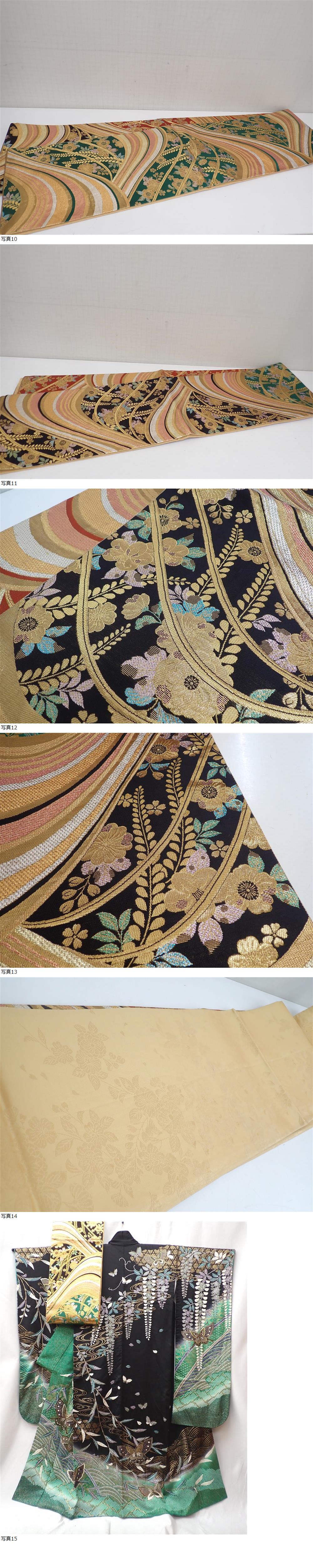 極上品 正絹 振袖 袋帯 2点セット 金彩 辻が花 藤に蝶 絞り 身丈156cm(+4cm) 裄丈65cm 逸品 成人式 結婚式 | ||||