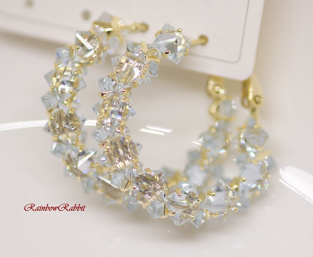 18K RGP プラチナ ダイヤ CZ フープ ピアス yp4988