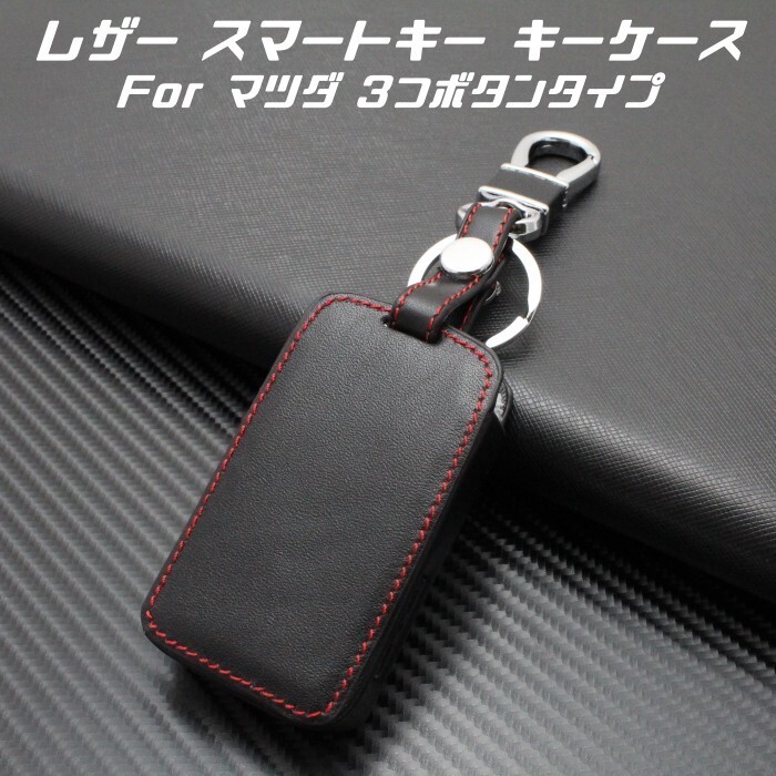 マツダ レザー キーケース 本革 3つボタン カラビナ付き マツダ3 CX-30