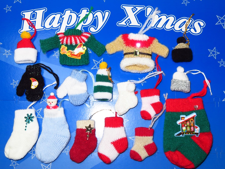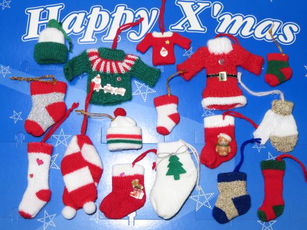 【☆クリスマスニット オーナメント16個☆】3 チャーム ミニニットソックス セ