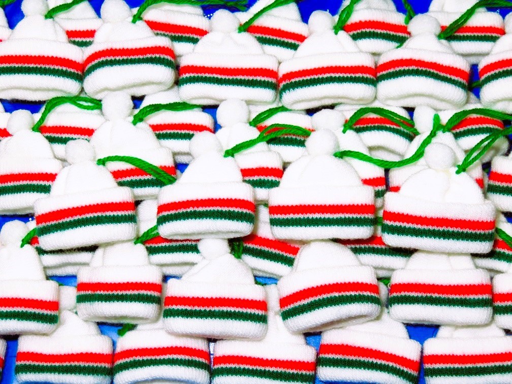 【☆ニットストライプボウシ緑梵天☆50個☆】クリスマス飾りバレンタイン ホワイト