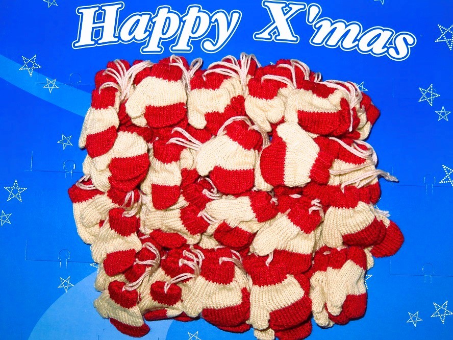 【☆ニットソックスチャーム赤/緑/黄100個☆】ペットの服などクリスマスアレンジ