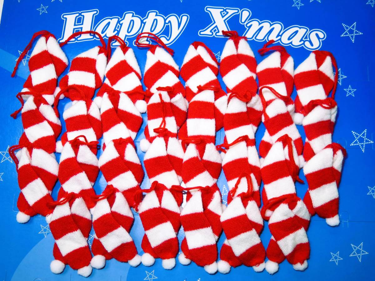 【☆クリスマスミニニット20個&シール20枚☆】ハイソックス 白/赤 緑/赤靴下